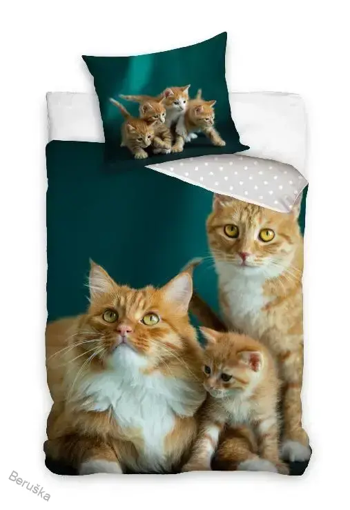 Bavlněné povlečení Kočičí Rodinka, je vyrobeno ze 100% hladké bavlny renforcé