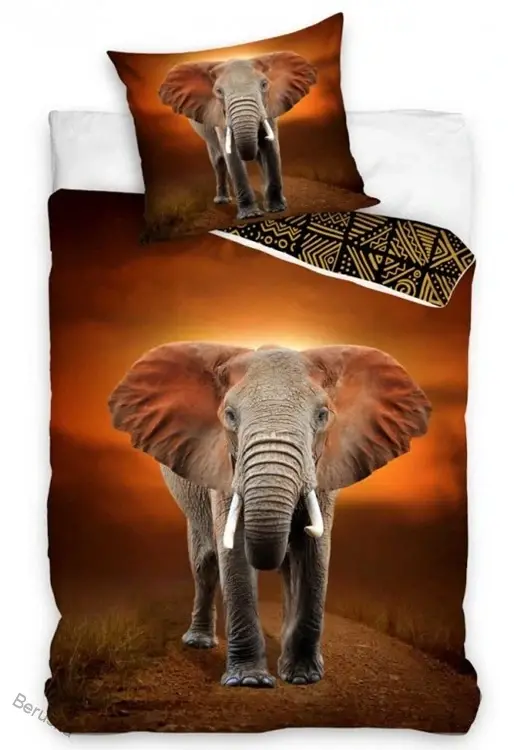 Na lícní straně povlaku přikrývky je kráčející slon, zvíře, které si mnozí z nás spojují se štěstím