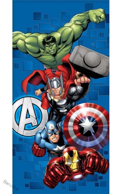 Na froté osušce jsou postavy z komiksového zpracování Avengers