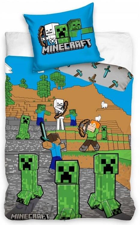 Na lícní straně povlaku přikrývky vidíme strhující souboj hrdinných postaviček minecraft proti příšerám
