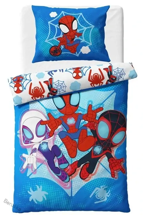 Na povlečení najdete nejen Spideyho, ale i jeho parťáky Ghost-Spider a Milese Moralese, se kterými tvoří nerozlučný tým
