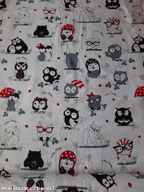 LÁTKA -LÁTKY - metráž *dětská Sovičky HUHU na bíléSkladem 4 m77 Kč/ m
