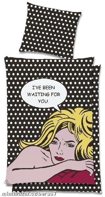 Bavlněné povlečení Čekám na Tebe je jedinečné komiksové povlečení ve stylu POP ART. Na potisku je zobrazena POP-ARTOVÁ blonďatá kráska.