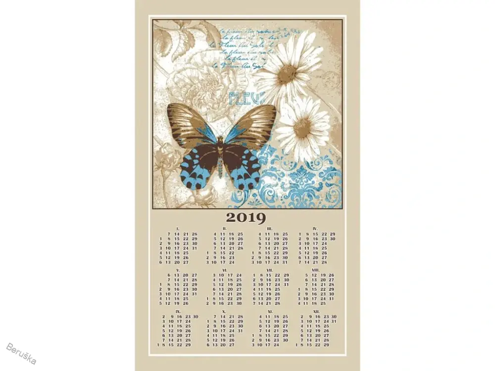 TEXTILNÍ KALENDÁŘ MOTÝL VINTAGE 2019