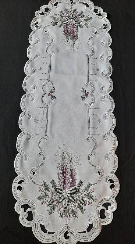 UBRUS vyšívaný 110 x 45 vánoční bílý fialová svíčkaSkladem 6 ks198 Kč/ ks