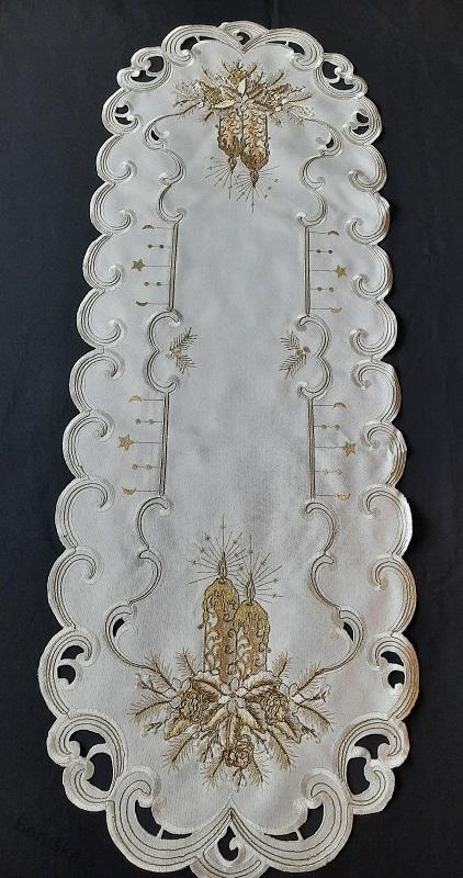 UBRUS vyšívaný 110 x 45 vánoční šampáňo + zlato