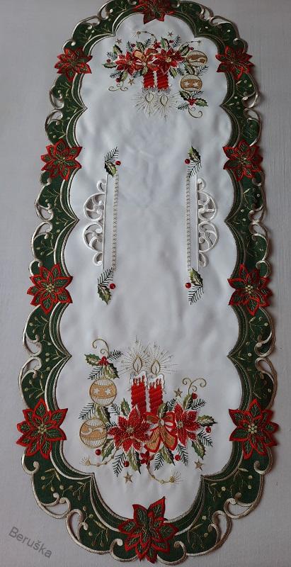 Vyšívaný dekorační ubrus pro chvíle vánoční pohody oživí atmosféru ve Vašem bytě mat: 100% polyester, žehlíme po rubu vel: přibližně 110 x 45