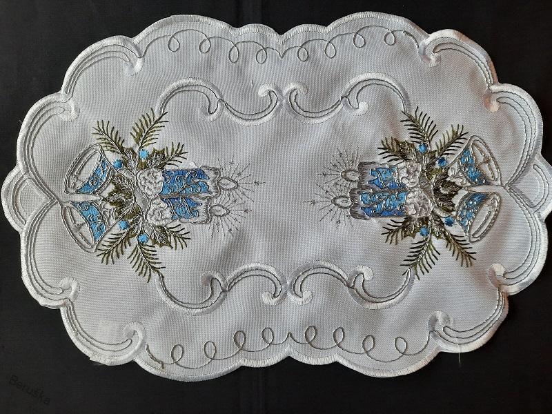 UBRUS vyšívaný 50 x 30 vánoční bílý modrá svíčkaSkladem 4 ks78 Kč/ ks