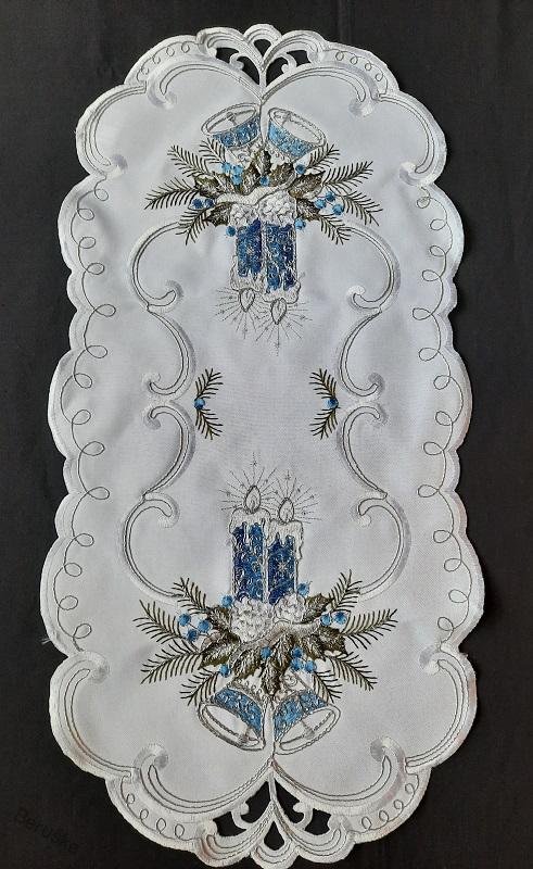 UBRUS vyšívaný 70 x 35 vánoční bílý modrá svíčkaSkladem 4 ks148 Kč/ ks