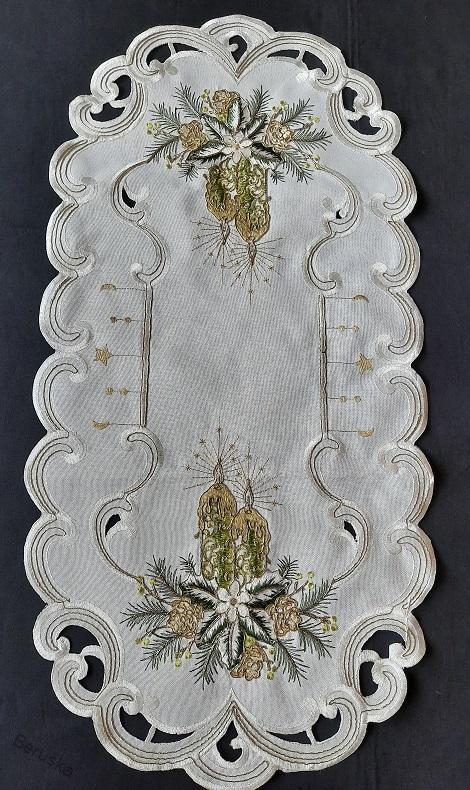 UBRUS vyšívaný 70 x 35 vánoční šampáňo + zelená svíčkaSkladem 4 ks148 Kč/ ks