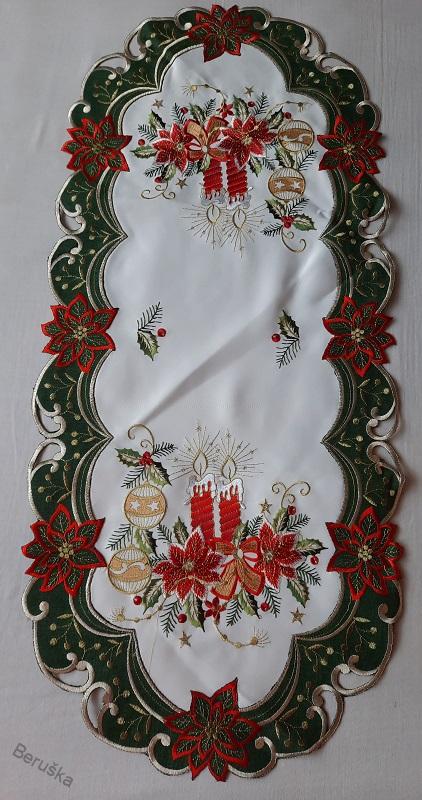 Vyšívaný dekorační ubrus pro chvíle vánoční pohody oživí atmosféru ve Vašem bytě mat: 100% polyester, žehlíme po rubu vel: přibližně 90 x 40