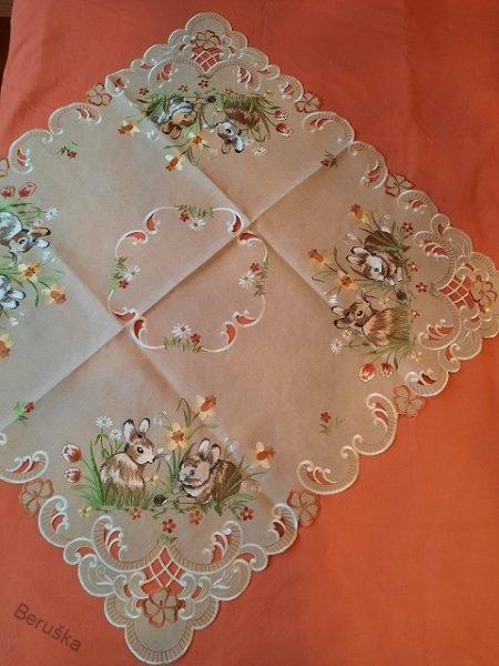 ubrus vyšívaný velikonoční zajíčci květ 85 x 85Skladem 5 ks235 Kč/ ks